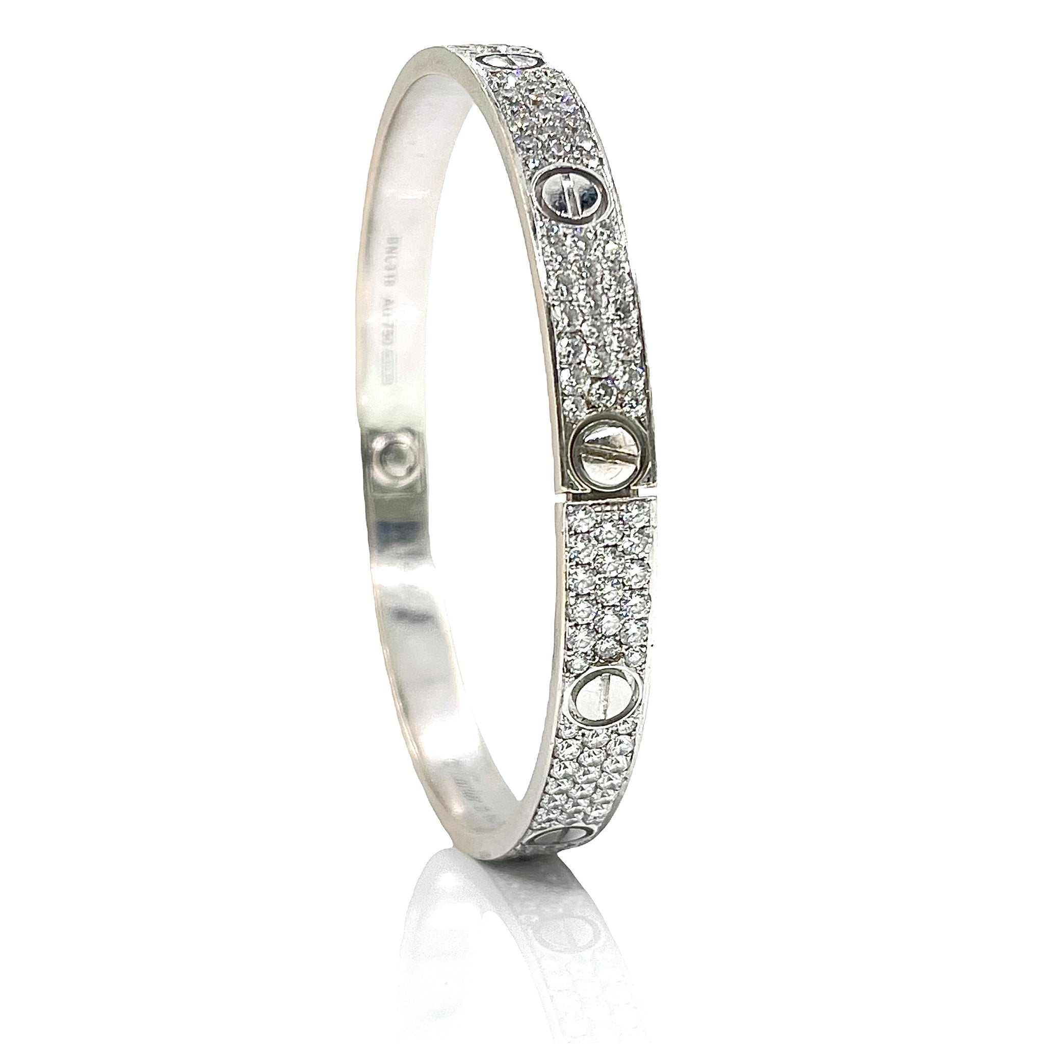 3.50 CT. Natural Diamond 18 KT White Gold Love Bangle