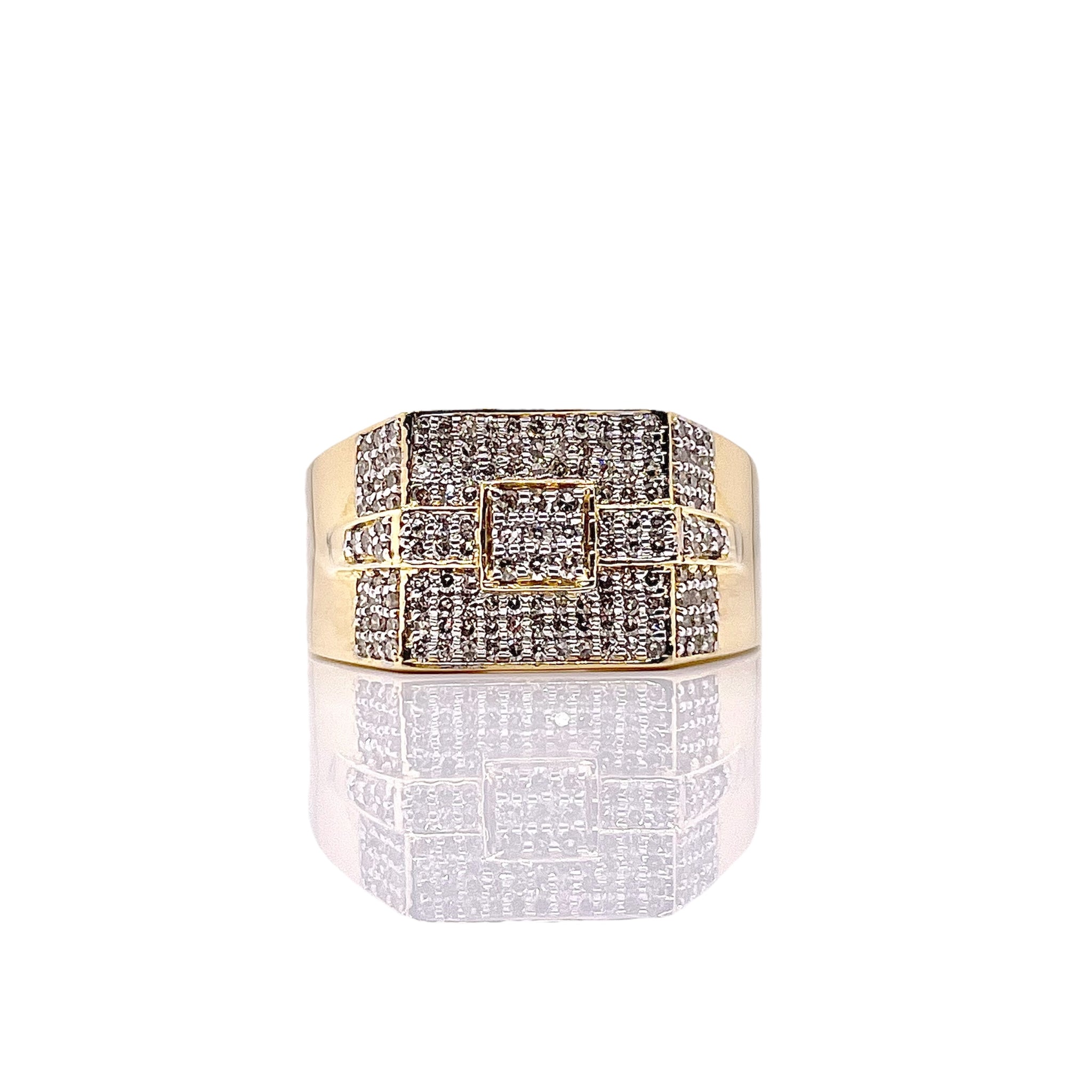 0.62 CT. Natural Diamond Square Shape Men’s Ring In 10 KT Yellow Gold