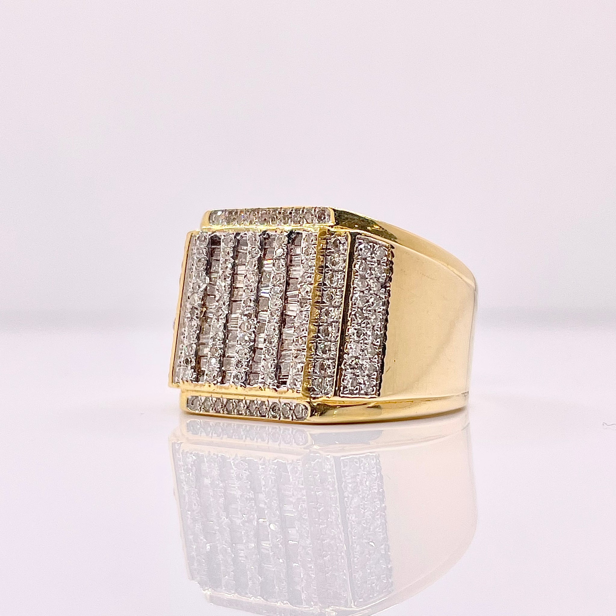 0.97 CT. Natural Diamond Square Shape Mens Ring In 10 KT Yellow Gold