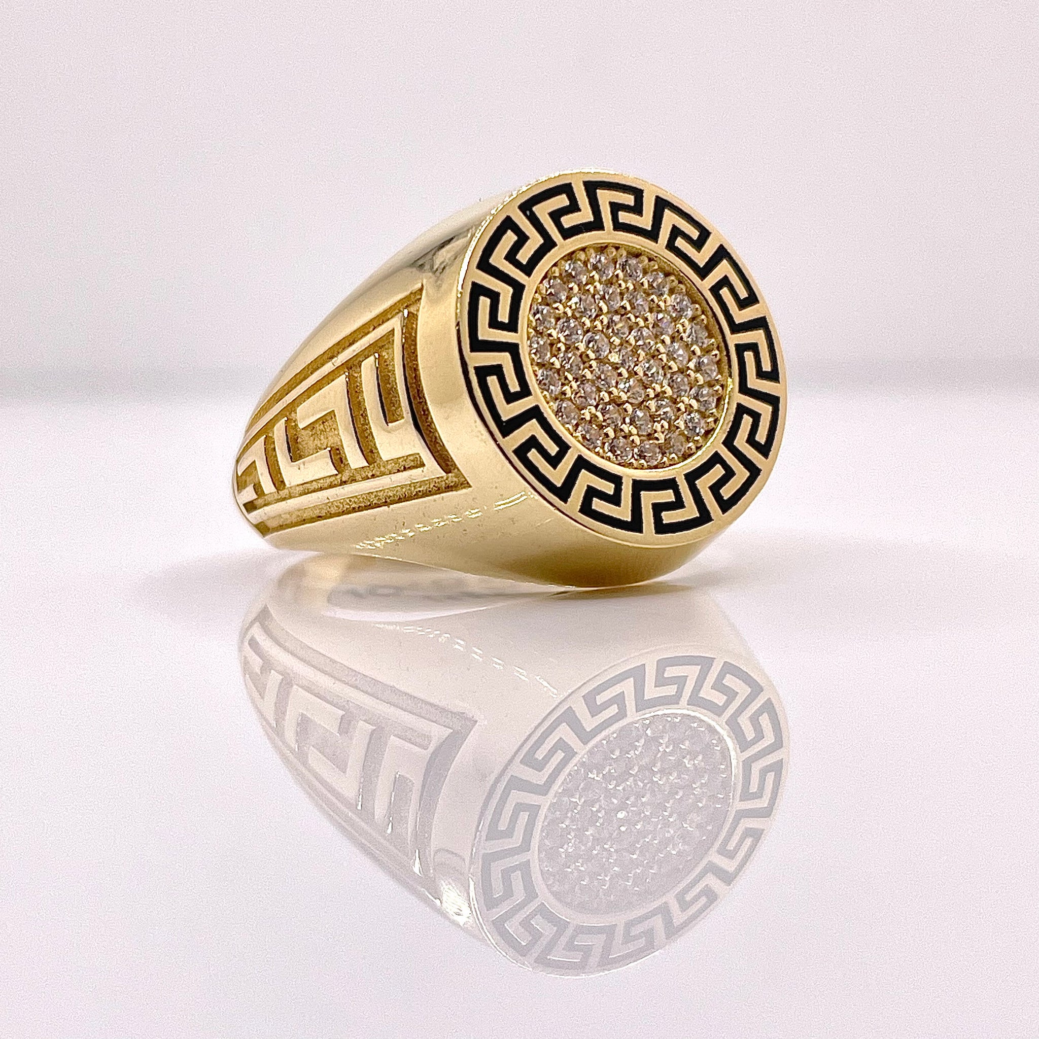 CZ Greek Key Design Men’s Ring In 14 KT Yellow Gold