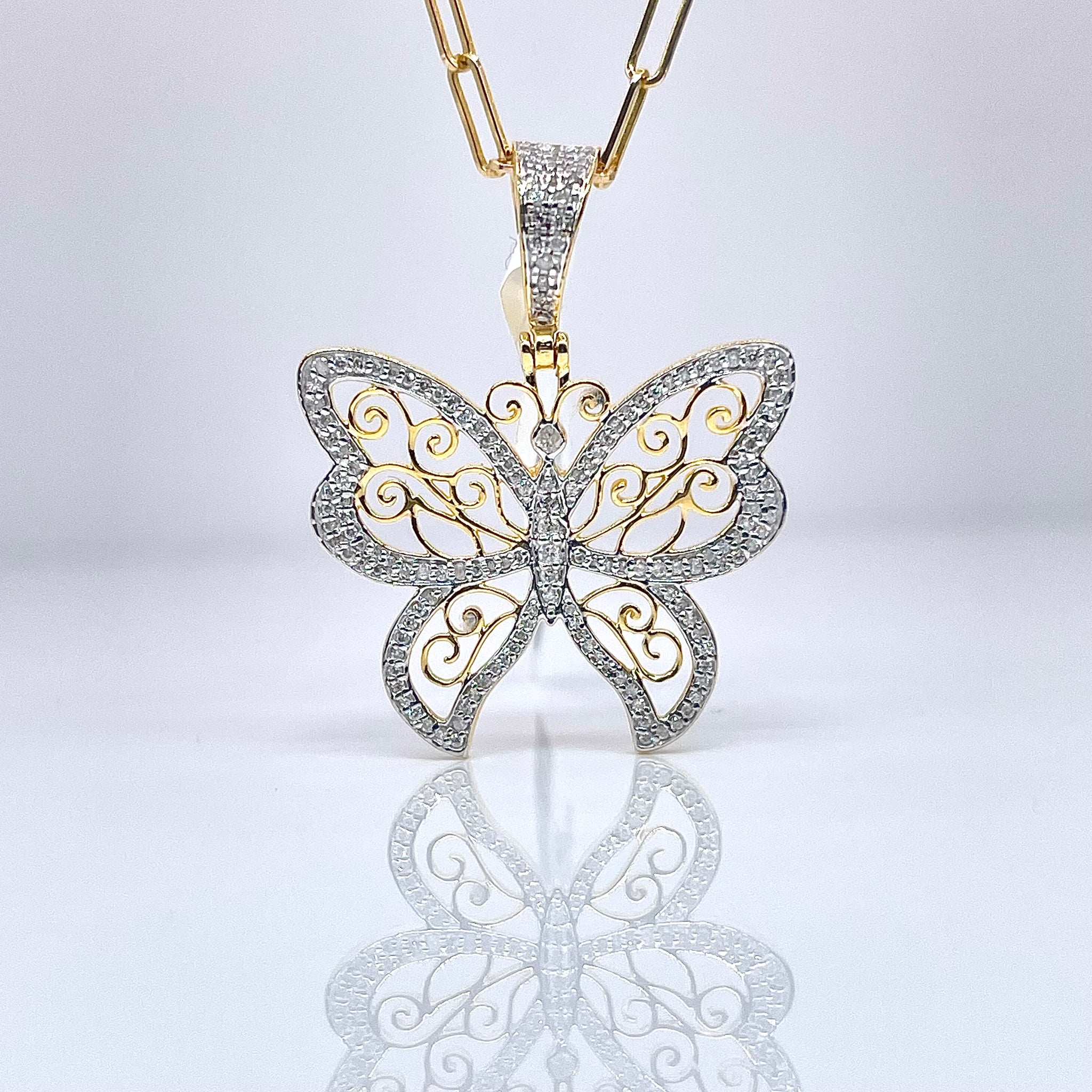 0.26 CT. Natural Diamond Butterfly Pendant In 10 KT Yellow Gold
