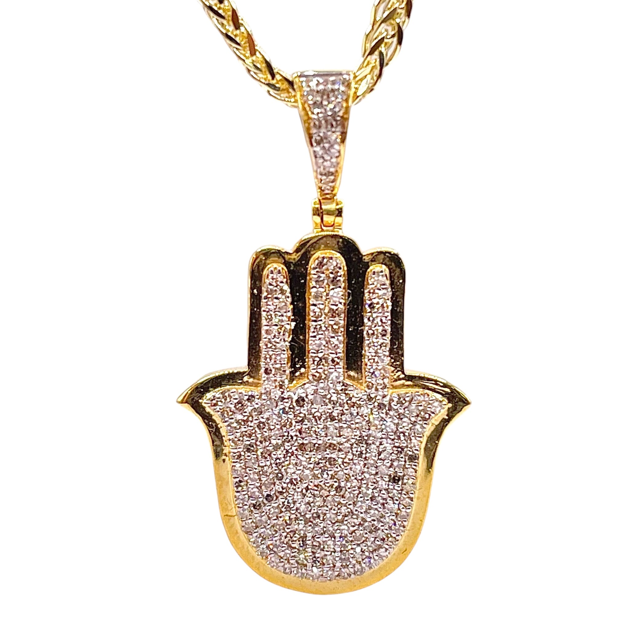 0.90 CT. Natural Diamond Hamsa Hand Pendant In 10 KT Yellow Gold