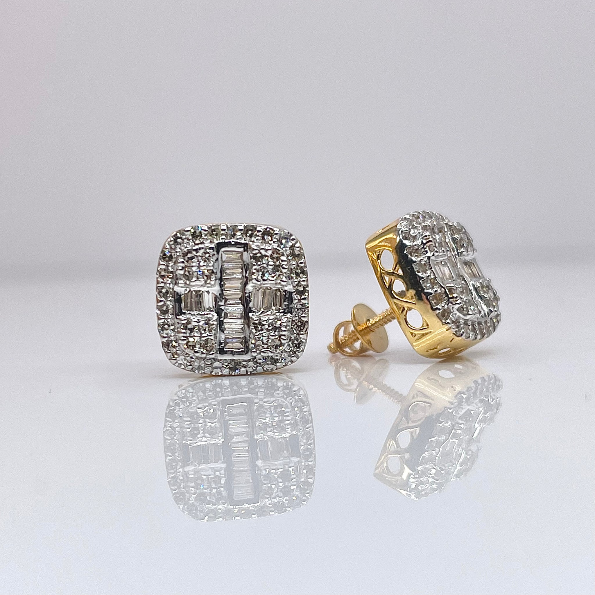 0.97 CT. Natural Diamond Square Shape Stud Earrings In 10 KT Yellow Gold