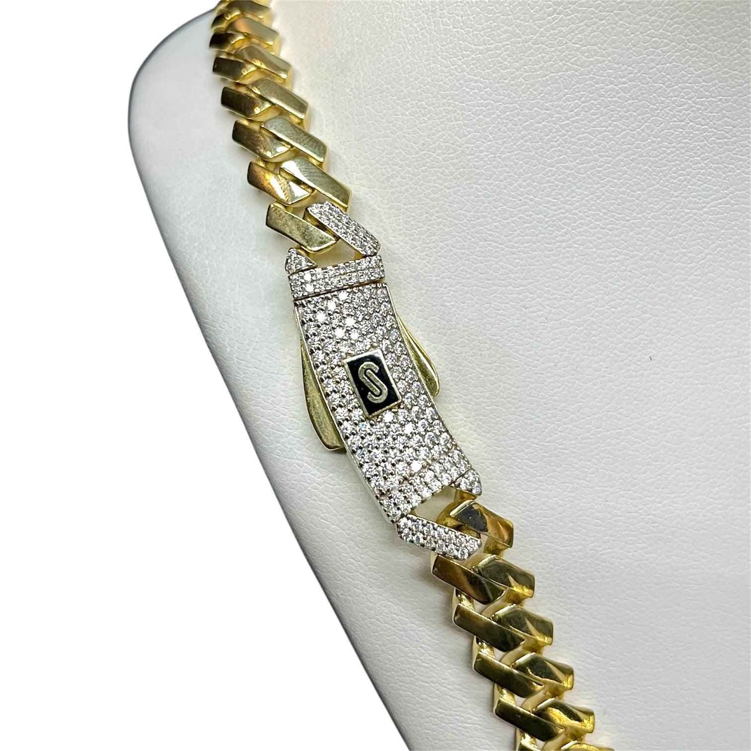 9mm Monaco Link Chain In 10 KT Yellow Gold With CZ Lock