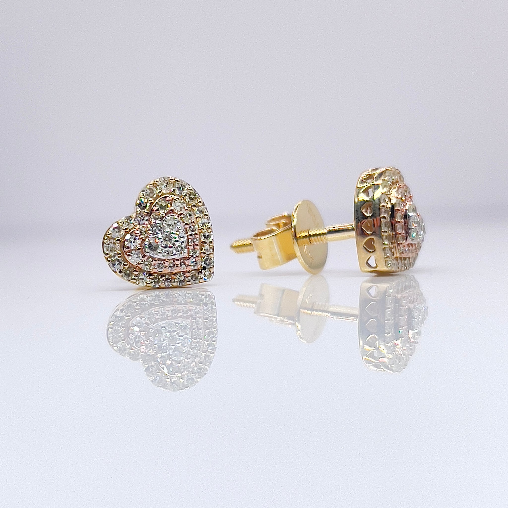 0.30 CT. T.D.W Natural Diamond Tri-Colour Heart Shape Stud Earrings In 10 KT Gold